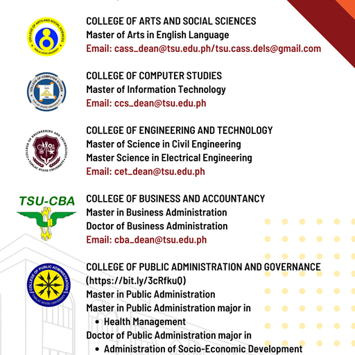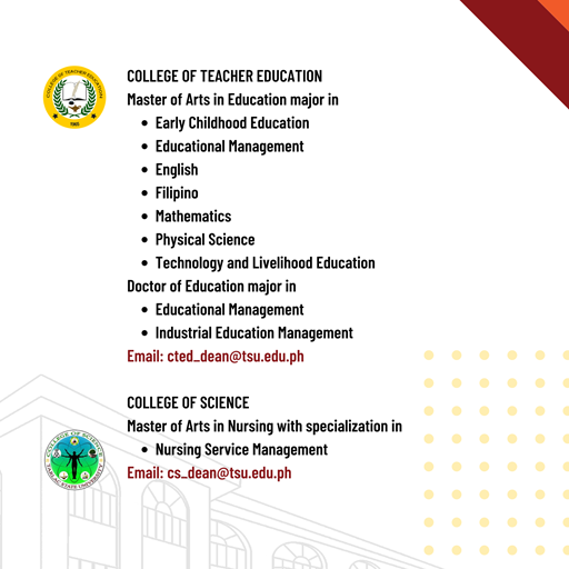 Please see list of programs offered here: https://tsu.edu.ph/academics/academic-programs/