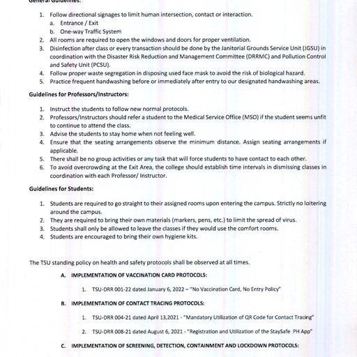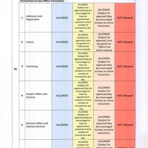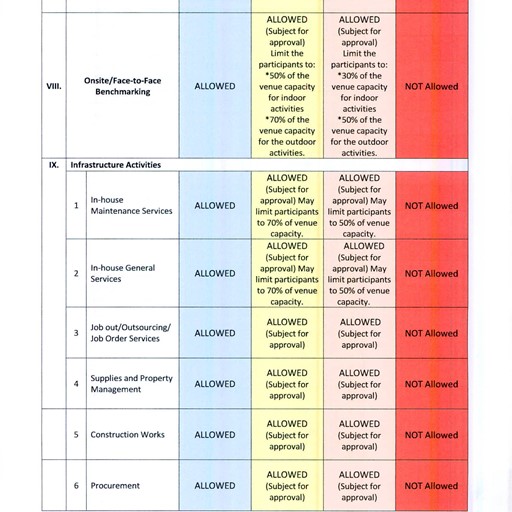However, the offices concerned shall submit their specific guidelines and procedures for the conduct of their activities to the DRRMC (subject for approval) to facilitate efficient and safe delivery of services and proper dissemination of information.