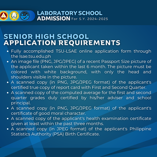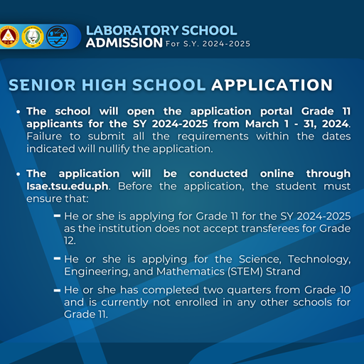 The online application for Tarlac State University-Laboratory School Admission Evaluation (TSU LSAE) will open on March 1, 2024 (Friday).